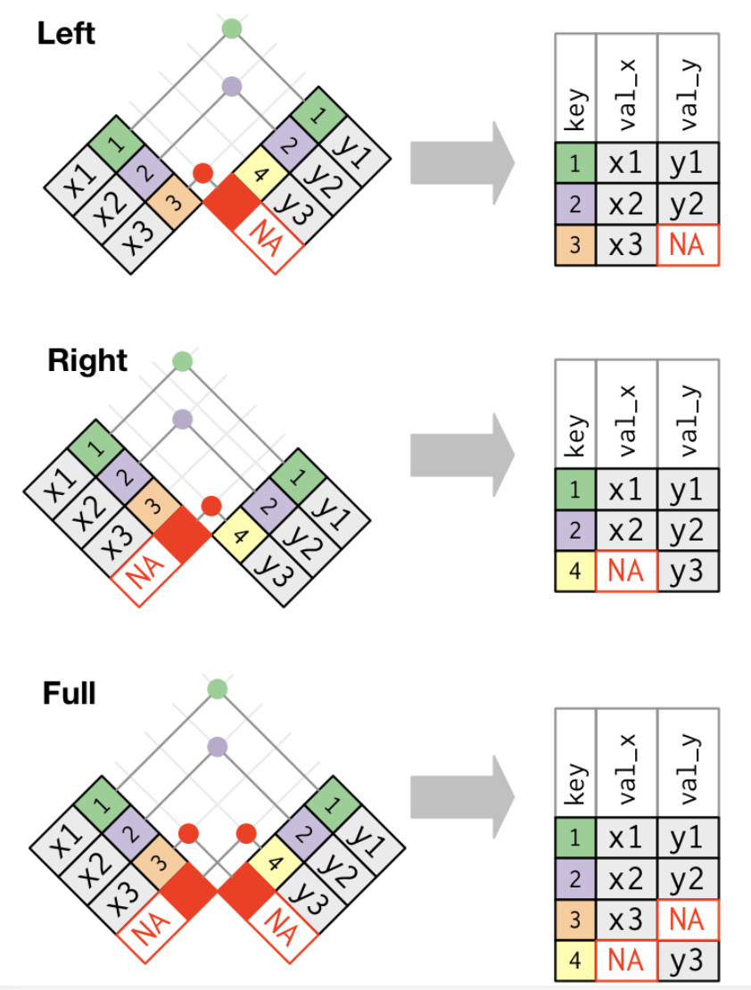 - 左結合は、xのすべての観測値を保持します。