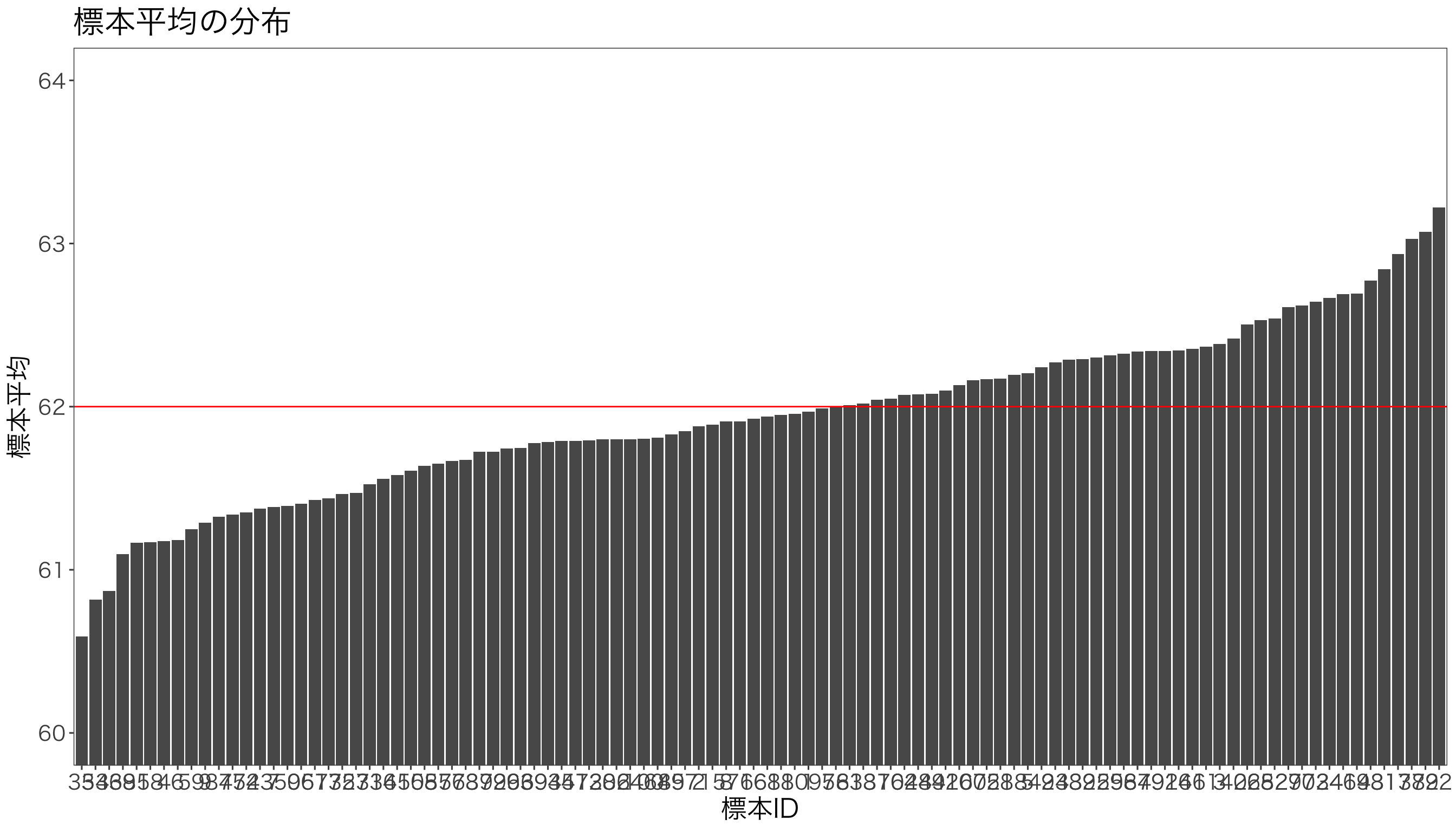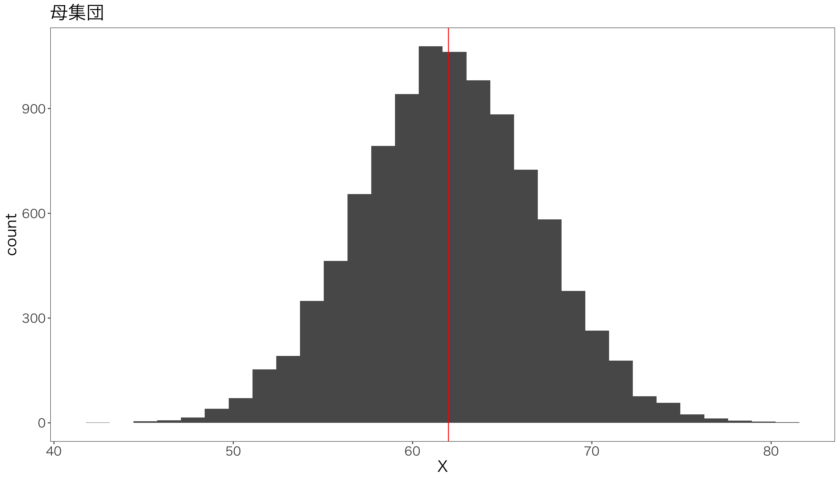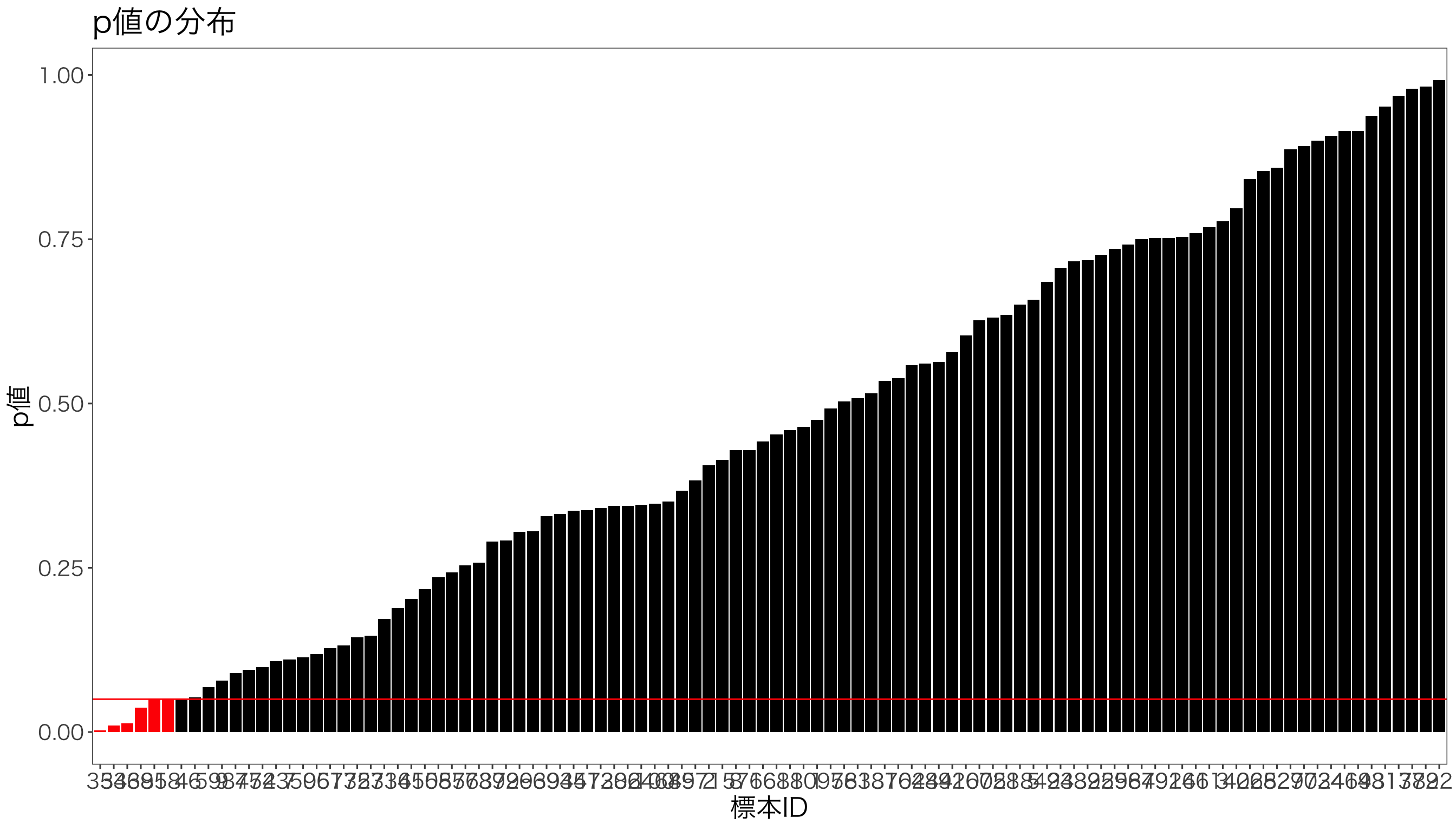 # 正規分布の確率密度関数dnorm_with_mean_sd <-function(x, mean =0, sd =1) {sqrt(1/(2*pi*sd^2))*exp(-((x - mean)^2)/(2*sd^2))}# パラメータの設定mu1 <-0# 帰無仮説の平均sd1 <-1# 帰無仮説の標準偏差mu2 <-1.5# 対立仮説の平均sd2 <-1# 対立仮説の標準偏差alpha =0.025# サンプルデータを生成x <-seq(-5, 5, by =0.01)df <-data.frame(x = x,dnorm1 =dnorm_with_mean_sd(x, mean = mu1, sd = sd1),dnorm2 =dnorm_with_mean_sd(x, mean = mu2, sd = sd2))# ggplotを使って描画g <-ggplot(df, aes(x = x)) +geom_line(aes(y = dnorm1), color ="blue") +geom_line(aes(y = dnorm2), color ="red")g <- g +geom_area(data =subset(df, x >qnorm(1-alpha, mu1, sd1)),aes(y = dnorm1), fill ="blue", alpha =0.2)g <- g +geom_area(data =subset(df, x <qnorm(alpha, mu1, sd1)),aes(y = dnorm1), fill ="blue", alpha =0.2)g <- g +geom_area(data =subset(df, x >qnorm(alpha, mu1, sd1) & x <qnorm(1-alpha, mu1, sd1)),aes(y = dnorm2), fill ="red", alpha =0.2) +theme_minimal() +labs(x ="Value", y ="Density",title ="両側検定における第1種の過誤と第2種の過誤")g <- g +geom_vline(xintercept =qnorm(1-alpha), linetype="dotted")g <- g +geom_vline(xintercept = mu1, color ="darkblue")g <- g +geom_vline(xintercept = mu2, color ="darkred")g <- g +annotate("text", x = mu1 +2.5, y =max(df$dnorm1) /6,label ="第1種の過誤", color ="darkblue", family ="HiraKakuProN-W3") +annotate("text", x = mu2 -0.5, y =max(df$dnorm2) /6,label ="第2種の過誤", color ="darkred", family ="HiraKakuProN-W3")g <- g +annotate("text", x = mu1 -2, y =max(df$dnorm1)-0.1,label ="帰無仮説下の分布", color ="blue", family ="HiraKakuProN-W3" ) +annotate("text", x = mu2 +1.5, y =max(df$dnorm2) -0.1,label ="真の分布", color ="red", family ="HiraKakuProN-W3") + mystyleprint(g)