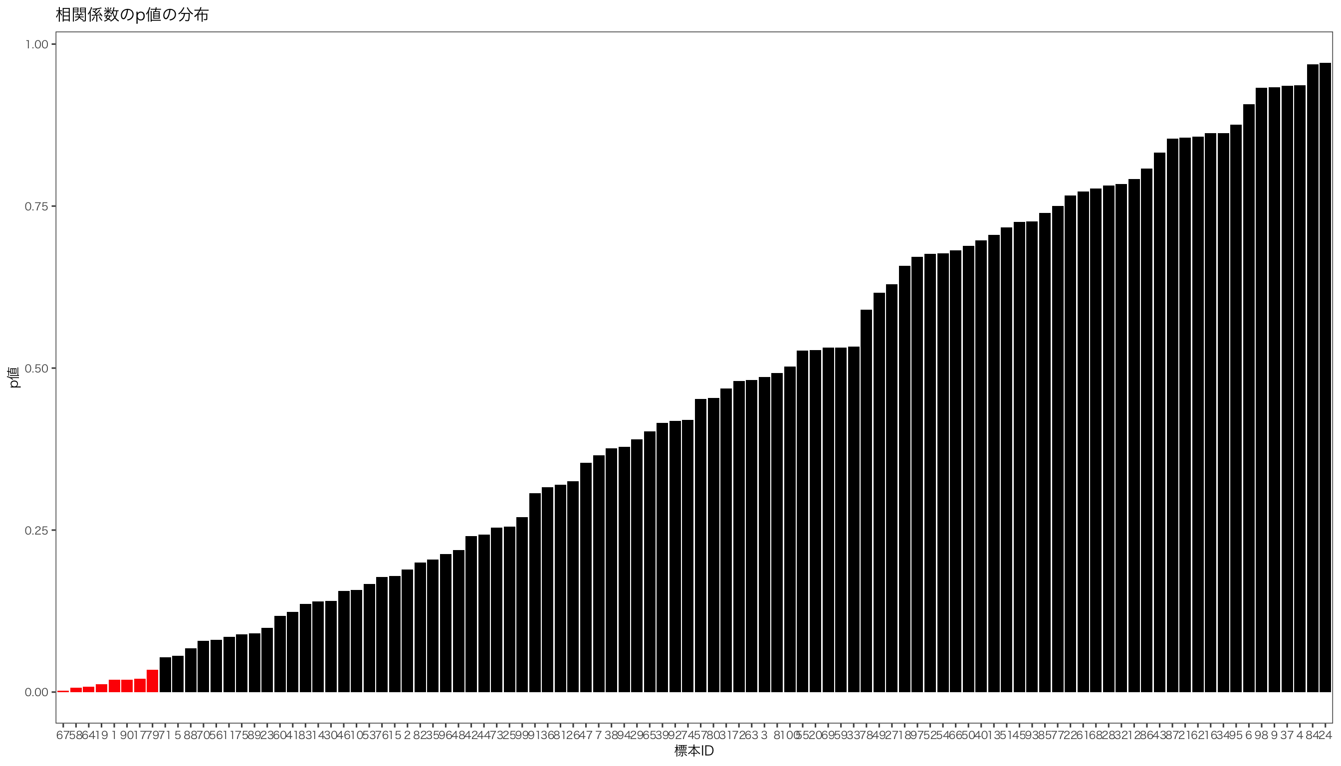 となり、非常に小さな値であることが分かりました。 つまり、2つのカテゴリー変数の間に関係がない、という帰無仮説の下で、観測された度数が発生することはほぼありえない、ということが言えるので、帰無仮説は棄却され、2つのカテゴリー変数には関係があると結論付けられます。