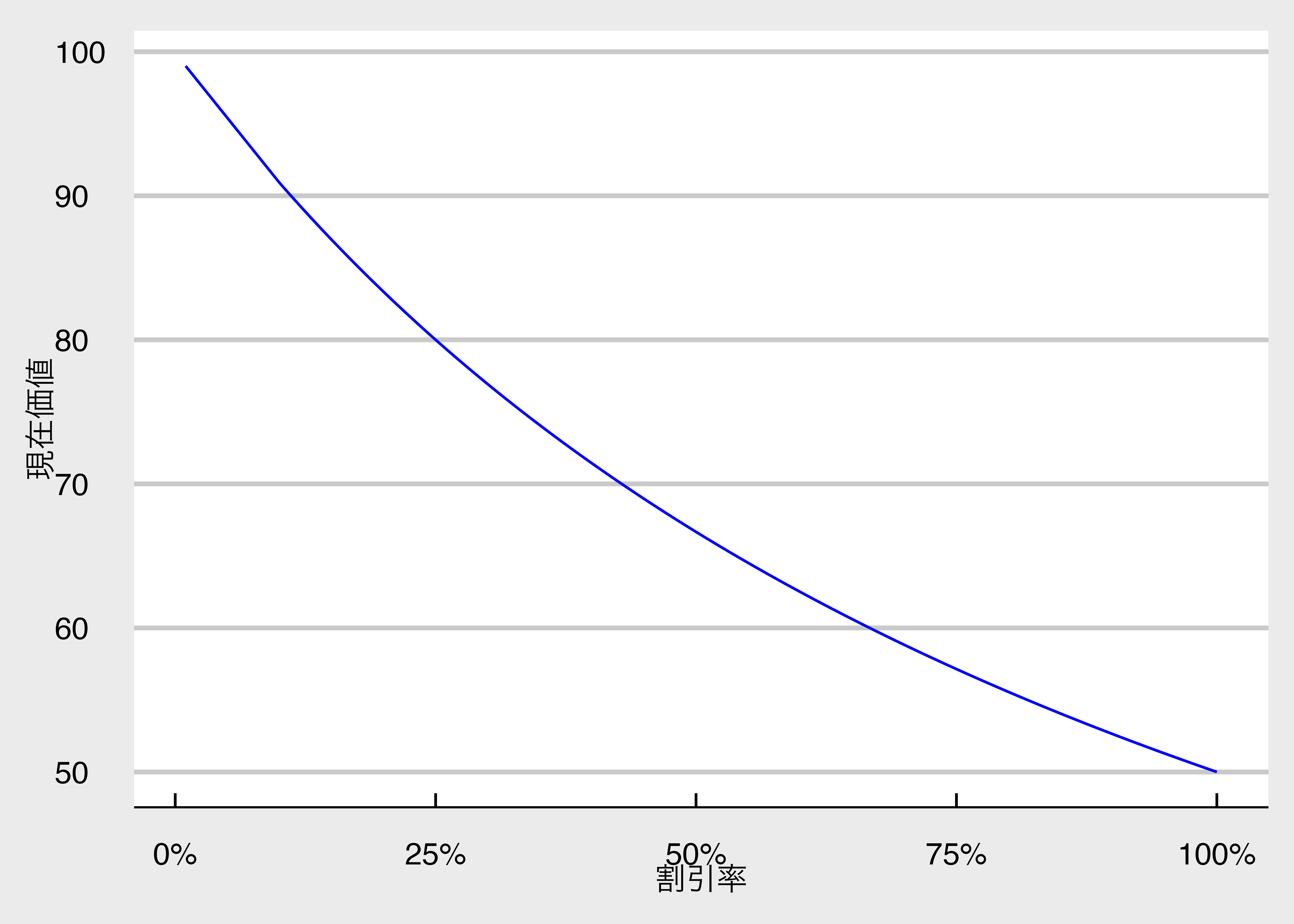 labs(x = "割引率", y = "現在価値") +