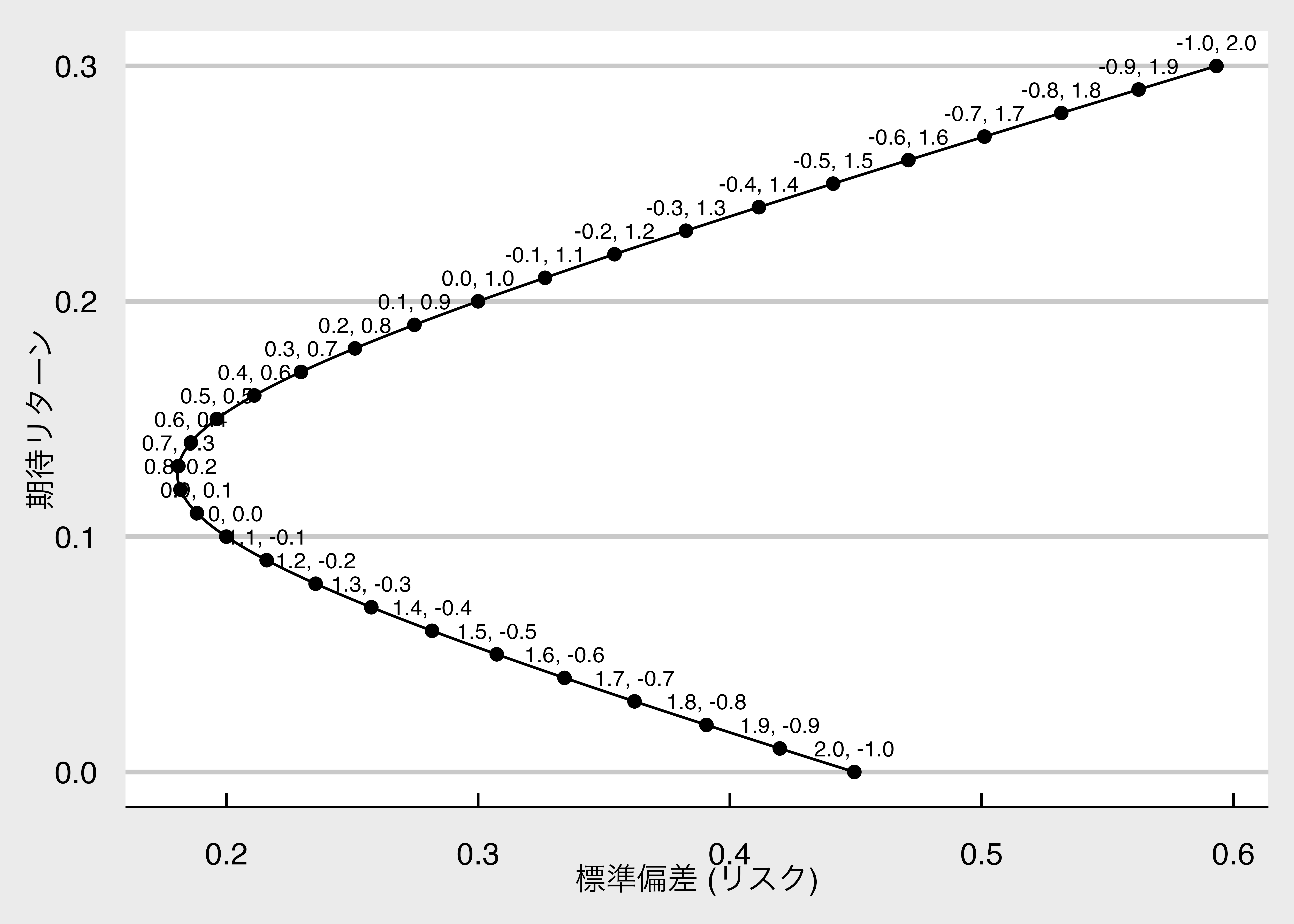 # 効率的フロンティア(双曲線)