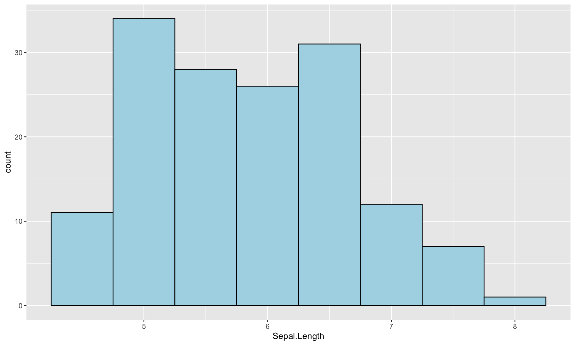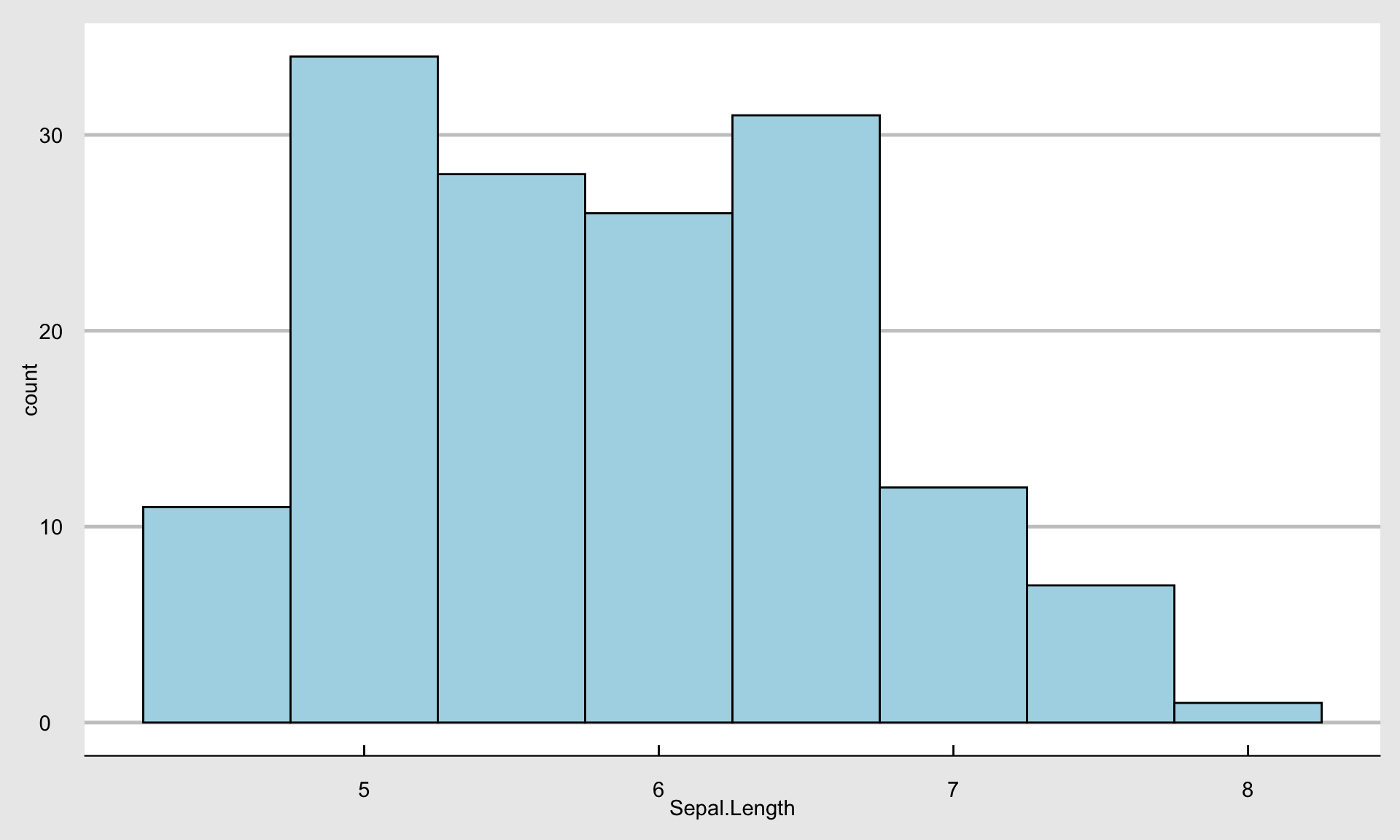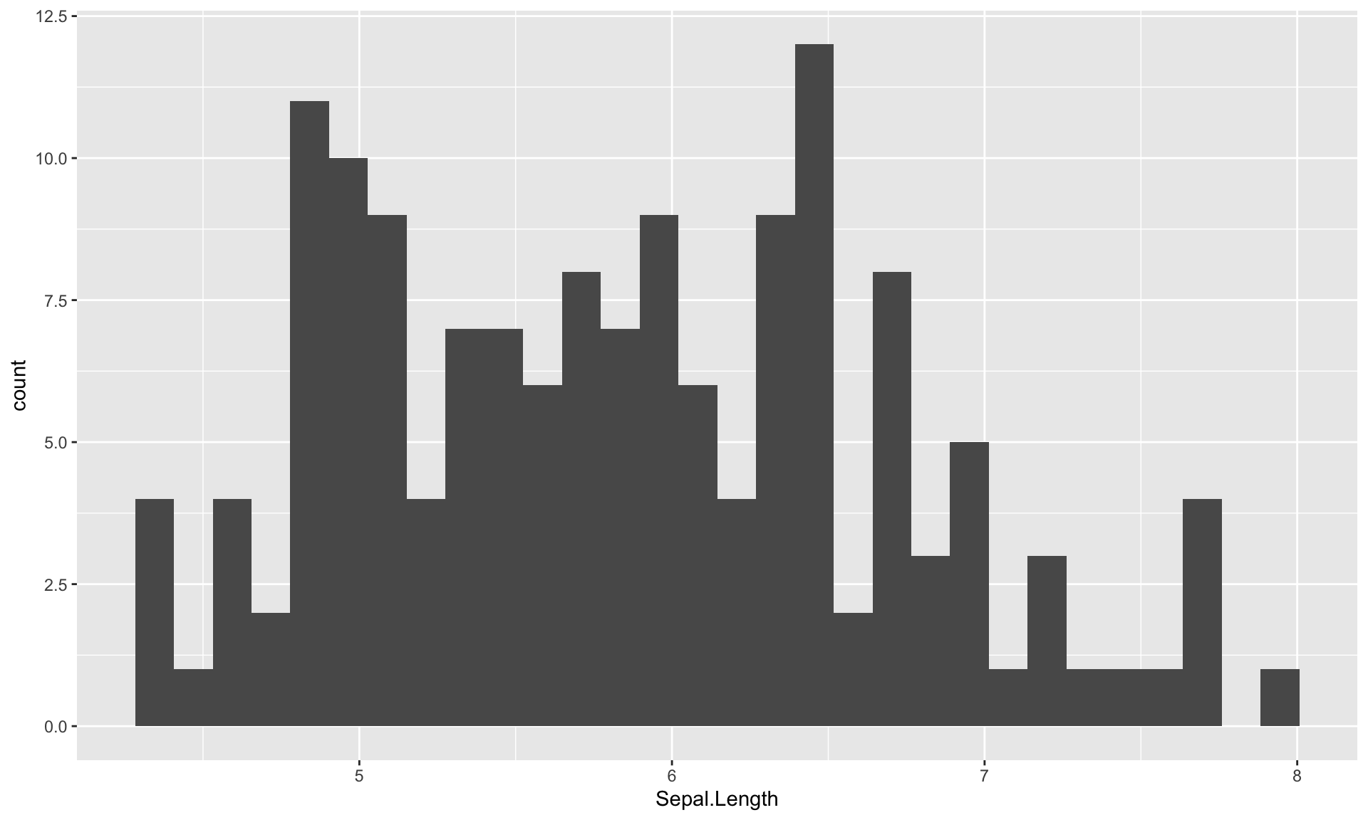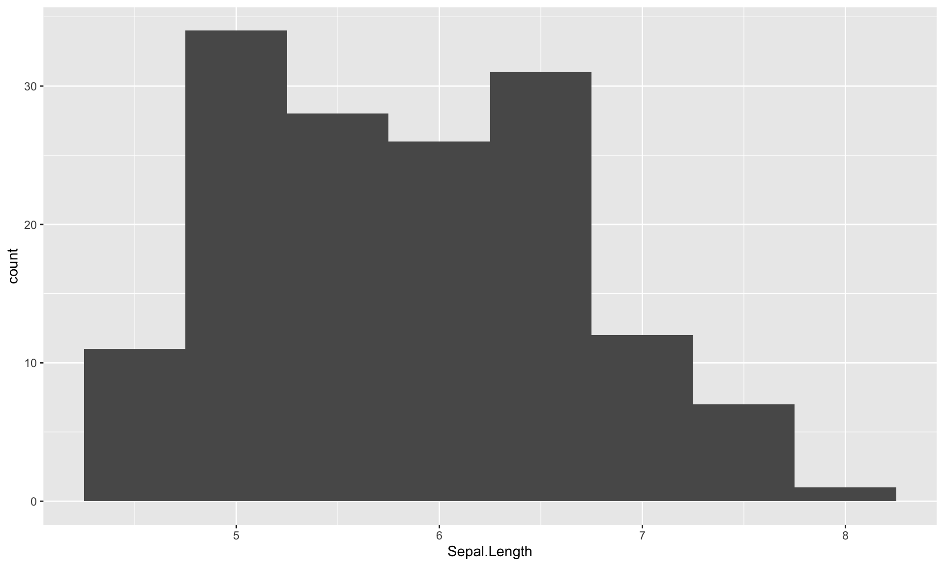 g <- ggplot(iris) + aes(Sepal.Length) +