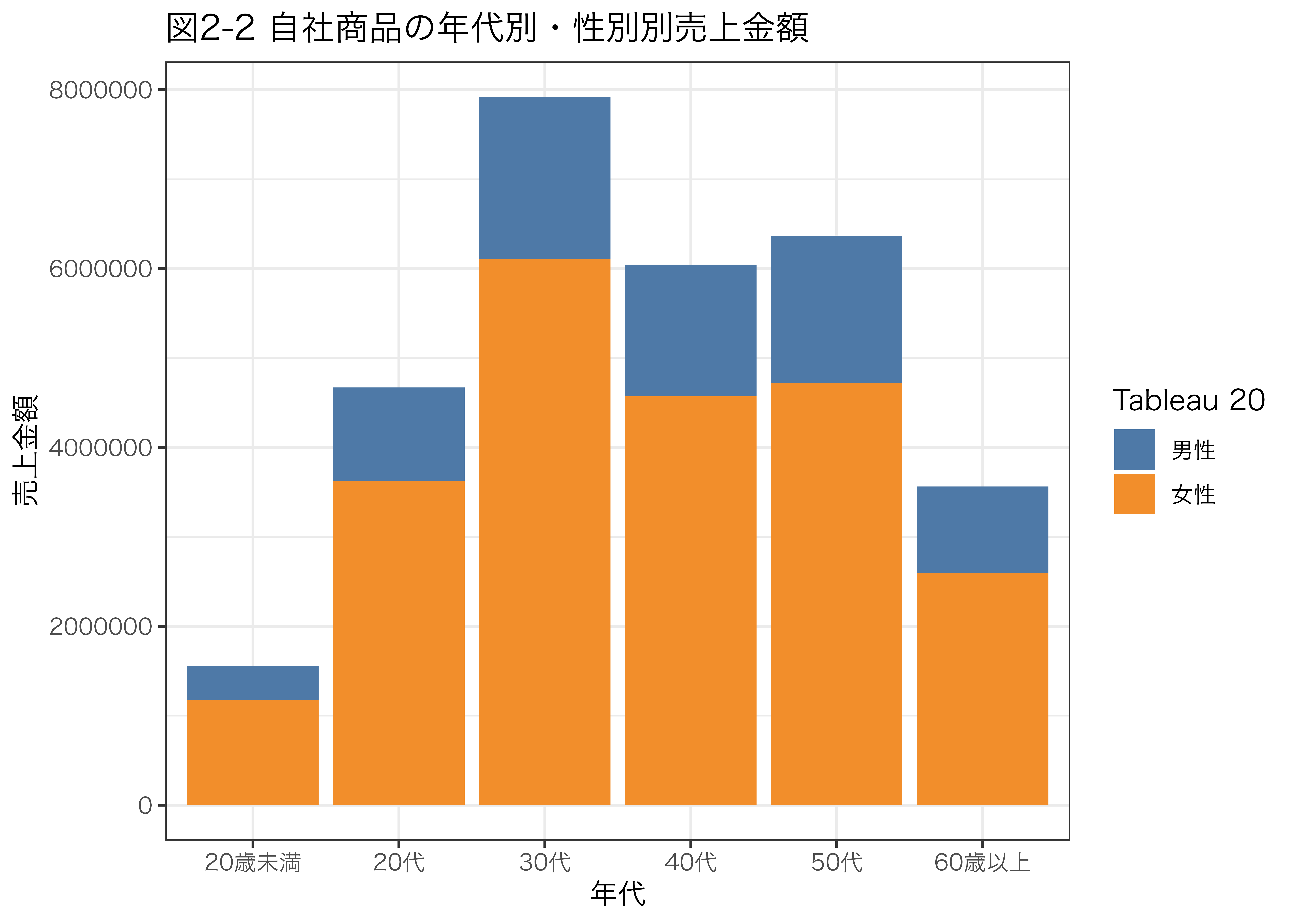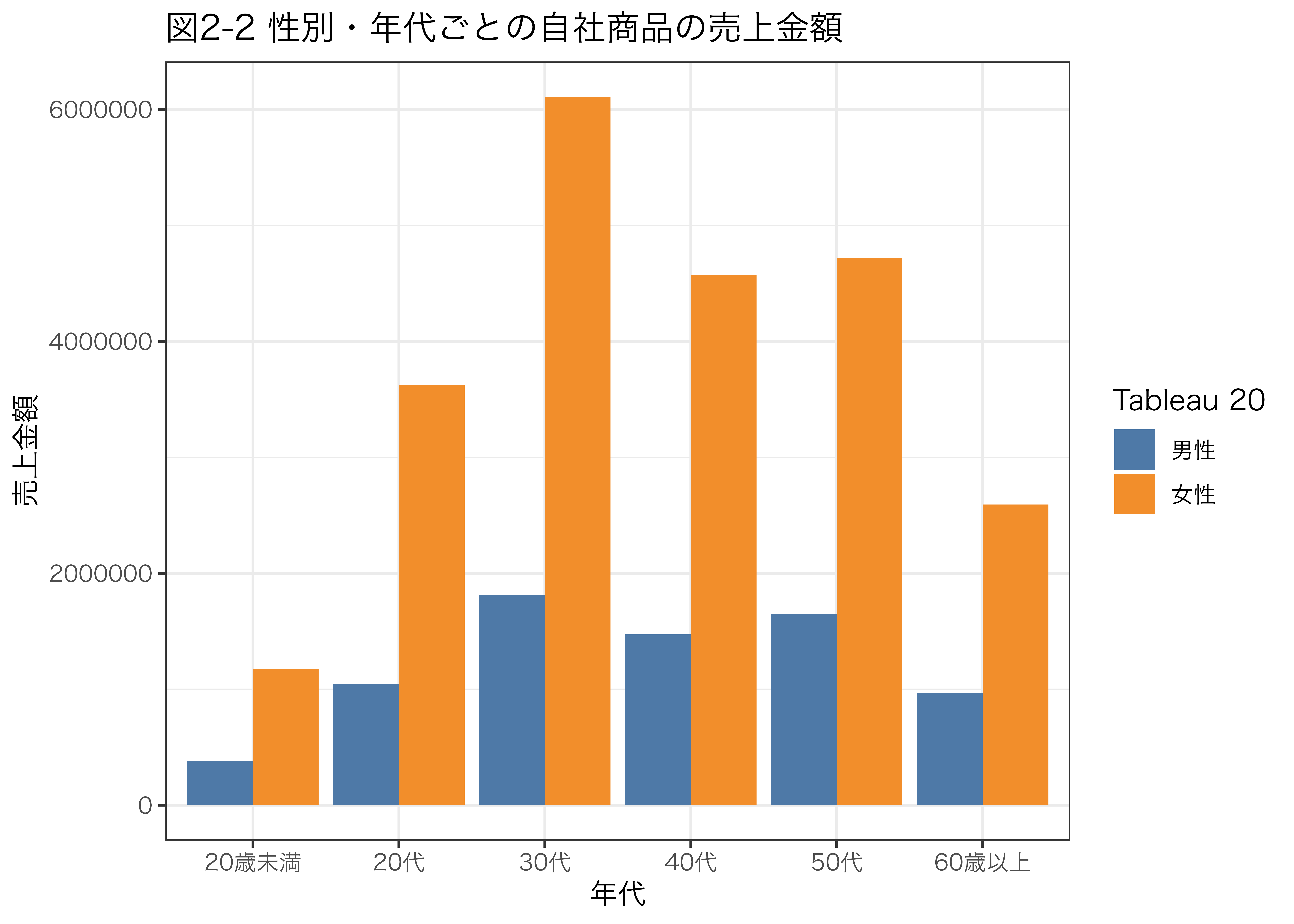 labs(title = "図2-2 性別・年代ごとの自社商品の売上金額",