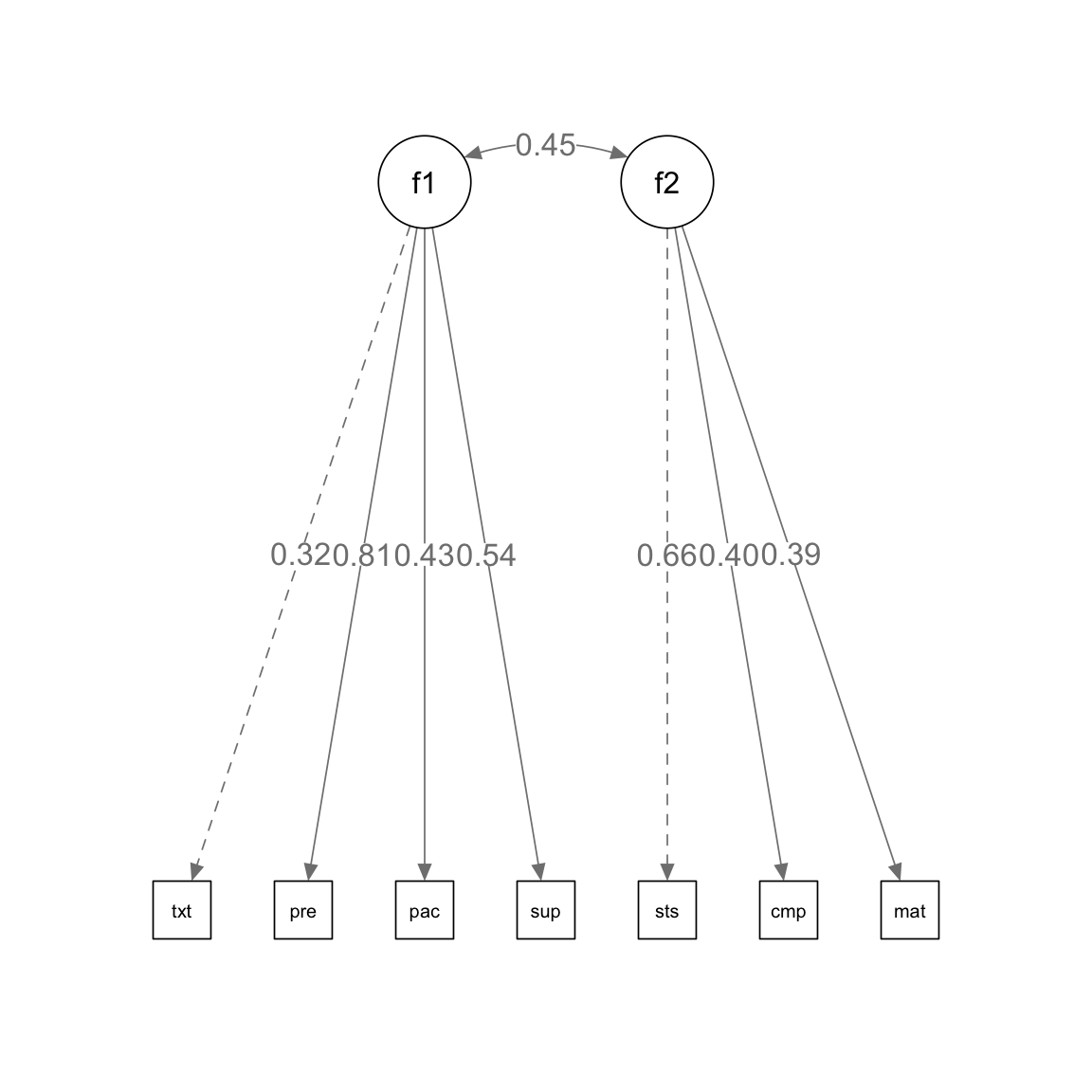 f2 =~ satis + comp + mat